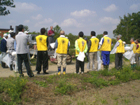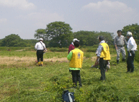 5月17(土)、三クラブ合同(川越初雁、川島・上尾)による三又沼ビオトープの除草作業が荒川河川敷・三又沼において行なわれました。 |