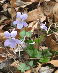 落ち葉の間の すみれ も 春 を待っていてました。 |