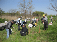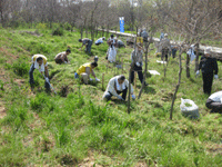 4月11(土)、5クラブ合同(川越初雁、川島、上尾中央、上尾ライオネス、上尾)による三又沼ビオトープの除草作業及び榛の木の植樹作業が荒川河川敷・三又沼において行なわれました。 |