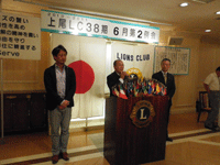 第38期最後の例会にあたって、水石会長は今期の活動が会員の協力によって成功を納めたことに感謝の辞を述べました。 さらに6月20日現在330C地区での義援金が46,295,368円に達したことにも触れ、継続的な支援活動も訴えました。 また入会式も行われ、(有)桂川 代表取締役 L佐藤 眞と(有)フォルテ 代表取締役 L渡邉 純の二名のライオンが誕生し、新しいパワーが当会に加わりました。 |