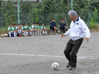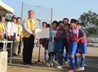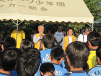 野会長 挨拶     始球式 L.星野(委員長) 始球式 L.古俣(第一副会長)    9月24日(土) 準優勝 尾山台ファイターズ 優勝 富士見 3位 大石  会長 閉会の挨拶