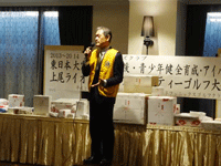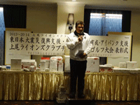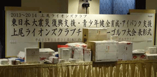 | 2013年11月21日(木)に東日本大震災復興支援・青少年健全育成・アイバンク支援上尾ライオンズクラブ チャリティーゴルフ大会を開催。会場となるリバーサイドフェニックスゴルフクラブのご協力のもと194名のご参加をいただき開催いたしました。早朝よりスタートとなりましたがご参加の皆様の笑顔同様に風も無く快晴の中、開催することができ感謝申し上げます。また、チャリティーBOXに皆様から多くの募金をいただきましたことを重ねて感謝申し上げます。支援金として有効に活用させていただきます。 |