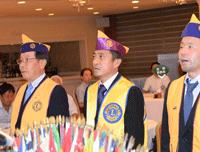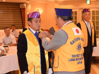 委嘱状の伝達 L.田沼 L.祢津 シェブロン 贈呈 中央がL.高沢英人 ライオンバッチ *あげお市政出前講座*