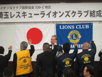 埼玉レスキューライオンズクラブ結成会が3月28日埼玉県県民活動センターで開催されました。 レスキューライオンズクラブは災害が発生にライオンズクラブの広域ネットワークを活用し、公共団体等と共に協力し災害支援活動を起こすことを目指して結成したクラブで、上尾ライオンズクラブがスポンサーとなり、埼玉で初めて結成されたライオンズクラブです。